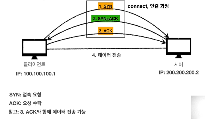 - TCP 3 way handsahke( 가상연결 )