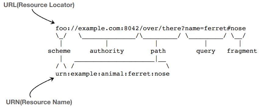 - URI는 로케이터(locator), 이름(name) 또는 둘다 추가로 분류될 수 있다.