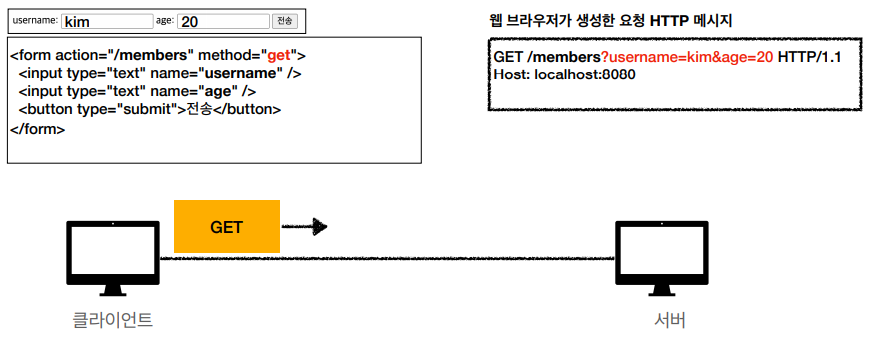 - HTML Form은 GET 전송도 가능