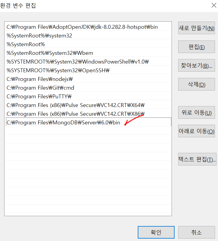 - default dbpath경로를 변경하고 싶다면 몽고DB가 설치된 위치의 bin/mongod.cfg파일에 storage.dbpath를 추가하면 됩니다.(설정 가이드 문서 : https://www.mongodb.com/docs/manual/reference/configuration-options/)