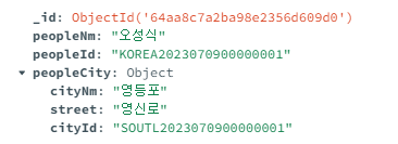 - ex. 'people'도큐먼트 내에 바로 'city'도큐먼트를 내장할 수 있다.