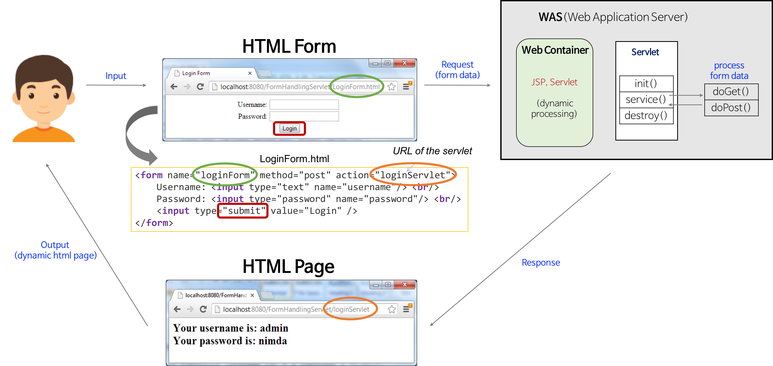 HTML Form -> Servlet -> HTML Page