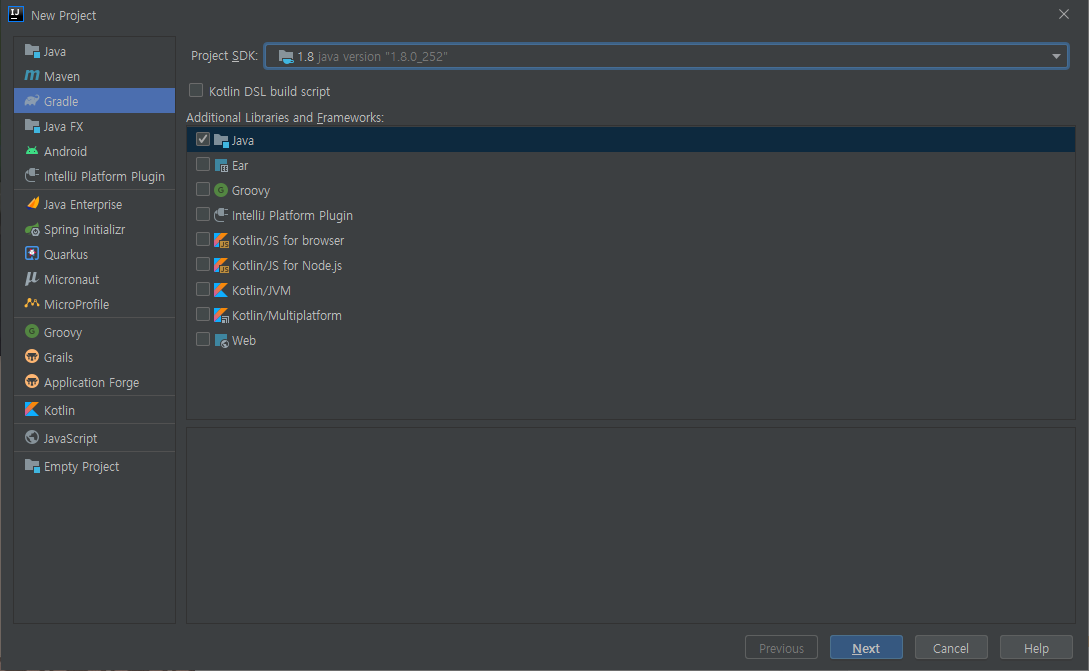 여기서 스프링 이니셜라이저(start.spring.io/)를 통해서 진행하지 않겠습니다. 이유는 스프링 이니셜라이저를 사용하게 되면 build.gradle의 코드가 무슨 역할을 하는지, 이니셜라이저 외에 추가로 의존성 추가가 필요하면 어떻게 해야 할지 등을 모르는 상태로 개발하는 경우가 있습니다. 그래서 하나씩 코드를 추가해 보겠습니다.