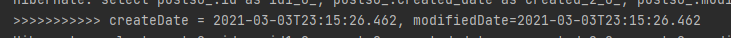 System.out.println(">>>>>>>>>>> createDate = " + posts.getCreatedDate() + ", modifiedDate=" + posts.getModifiedDate());