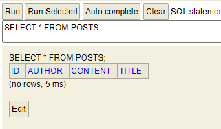 insert into posts(author, content, title) values ('author', 'content', 'title');