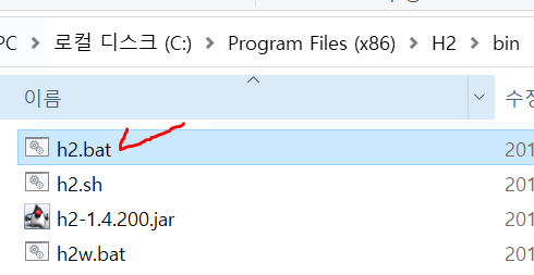 2) 설치된 경로 이동(cd ~) 후 /h2.bat 실행