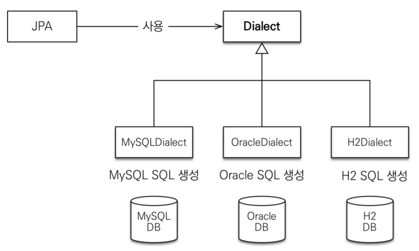 - JPA는 특정 데이터베이스에 종속적이지 않습니다.