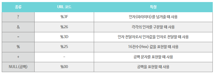 - URL은 ASCⅡ문자 집합을 사용하여 인터넷을 통해서만 전송할 수 있다.