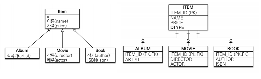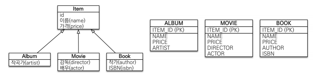 - TABLE_PER_CLASS : 구현 클래스마다 테이블 전략