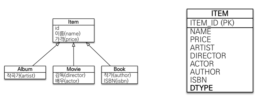 - 객체의 상속과 구조와 DB의 슈퍼타입 서브타입 관계를 매핑