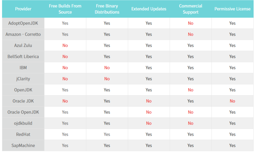 - 일부 제공 업체는 유료 고객에게 확장 업데이트 및 고객 지원을 제공합니다 (예 : Oracle JDK).