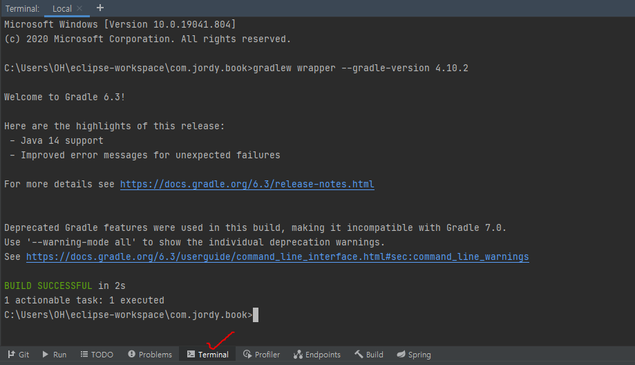 저의 경우 IntelliJ 2020.2(현재는 Lombok 플러그인 이슈로 인한 2020.3으로 업그레이드함)에서 자동 세팅된 Gradle 버전 6를 사용하고 있어서 테스트코드에서 에러가 발생했었습니다. 그래서 Gradle 4.10.2로 다운 그레이드를 진행했습니다.