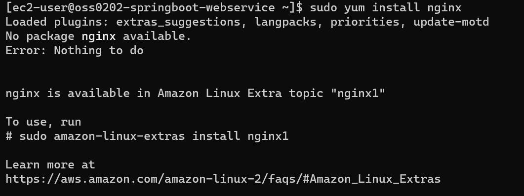 1. 현재 제가 작업중인 인스턴스(EC2 - AWS Linux 2)에서는 yum을 통한 nginx 설치가 지원되지 않습니다.