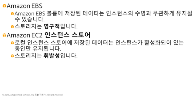 - Amazon EBS, EC2 인스턴스 스토어 비교