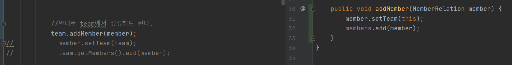 - 위 코드처럼 member, team 양쪽에 설정