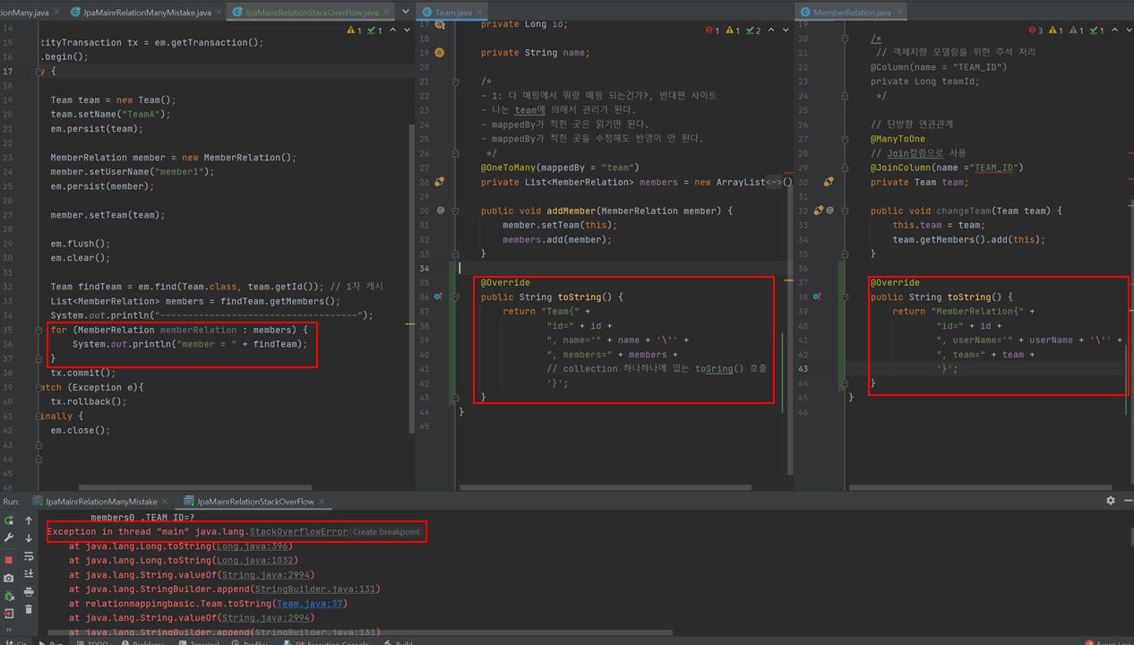 - 양방향 매핑시 가장 많이 하는 실수