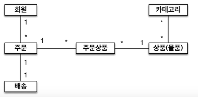 - 테이블의 N:M 관계는 중간 테이블을 이용해서 1:N, N:1으로 변경해야한다.
