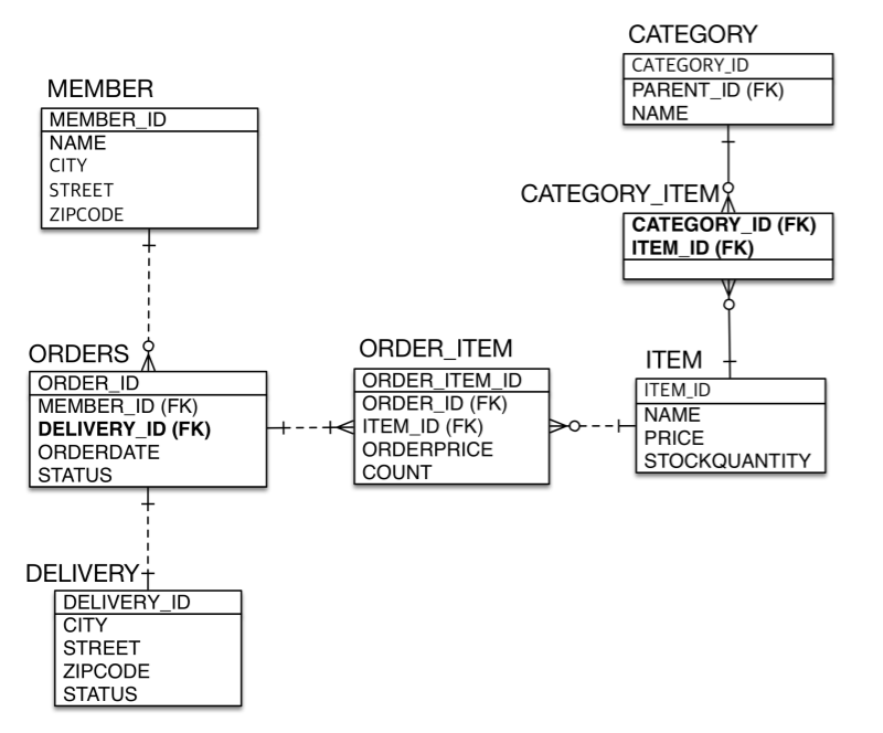 - 다대다( N:M )연관관계를 추천하지는 않지만 예제를 보여주기 위해서 'CATEGORT_ITEM' 테이블을 생성했습니다.